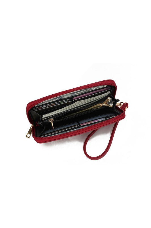 Interior details: Interior features a wall zip pocket, two slip pockets and a center zip compartment