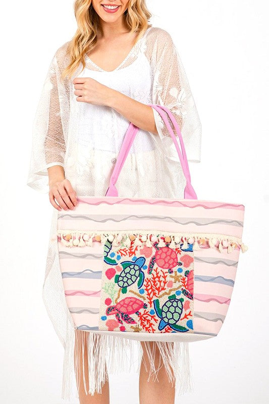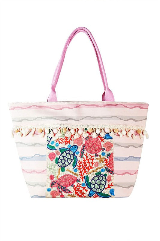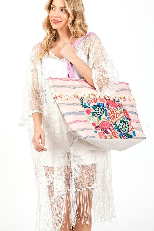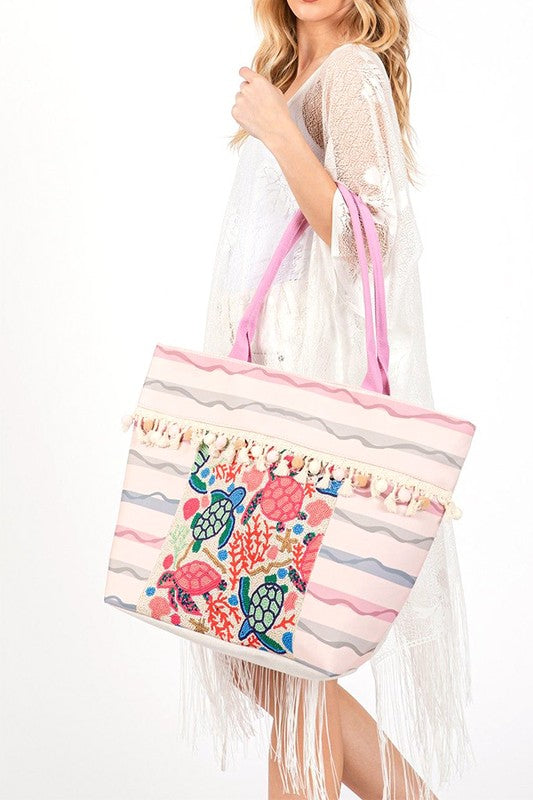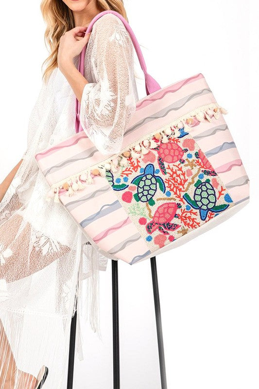 Sea Life Beaded Embroidered Oversize Tote Bag