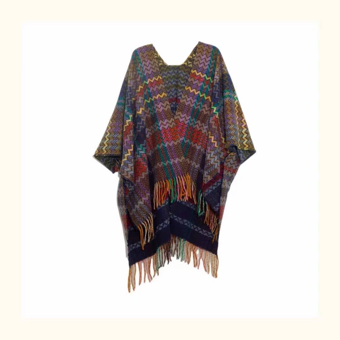 Bohemia Western Ethnic plaid tassel kimono Thermal Cape