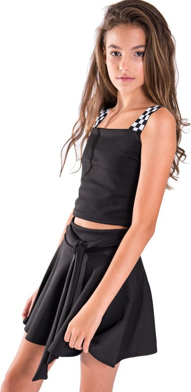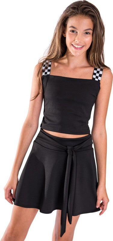 KIDS CHECKERBOARD ELASTIC STRAP CROP TOP