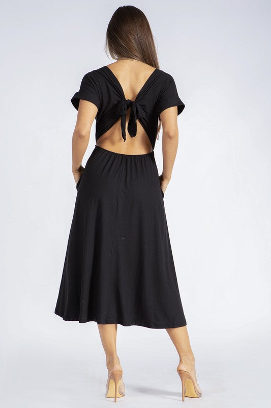 Strappy, backless rayon spandex dress with pockets A-line skirt