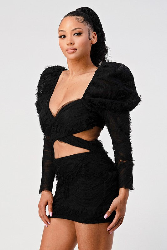 Soft, playful, and irresistibly chic, this set is perfect for those who want to make a statement with subtlety and grace. Pair it with nude heels to let the outfit shine, and accessorize with minimalist jewelry to complete a look that's both enchanting and refined.