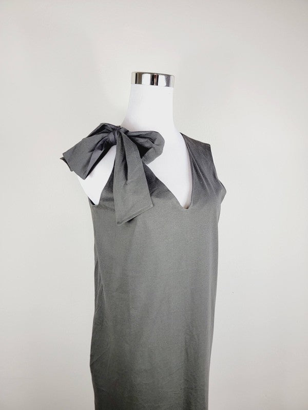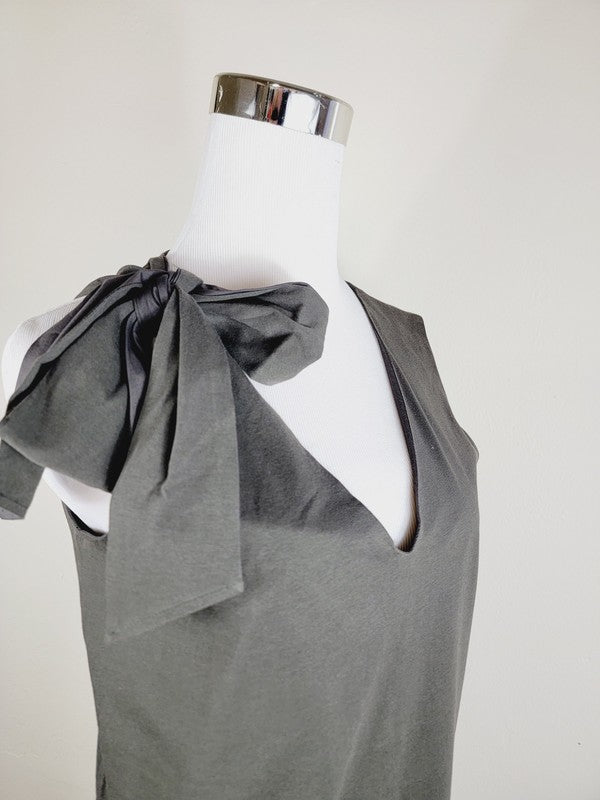 Cotton Jersey dress,One Shoulder Tie with pockets