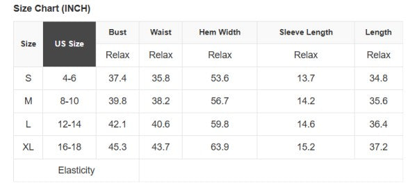 See size chart for approximate measurements.