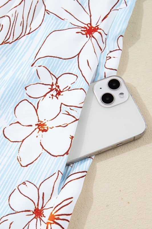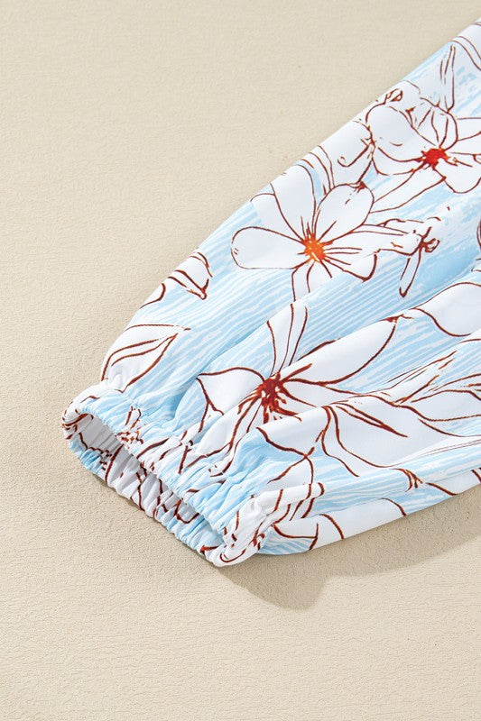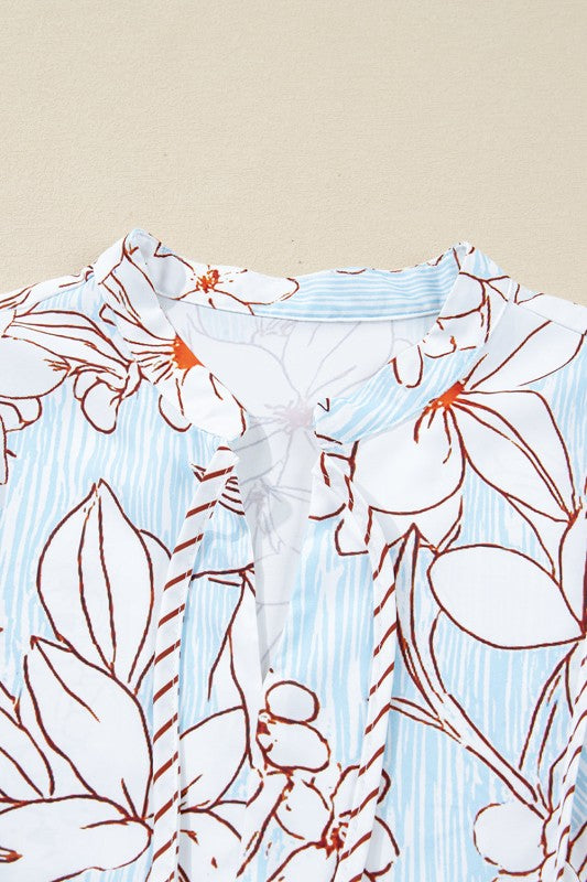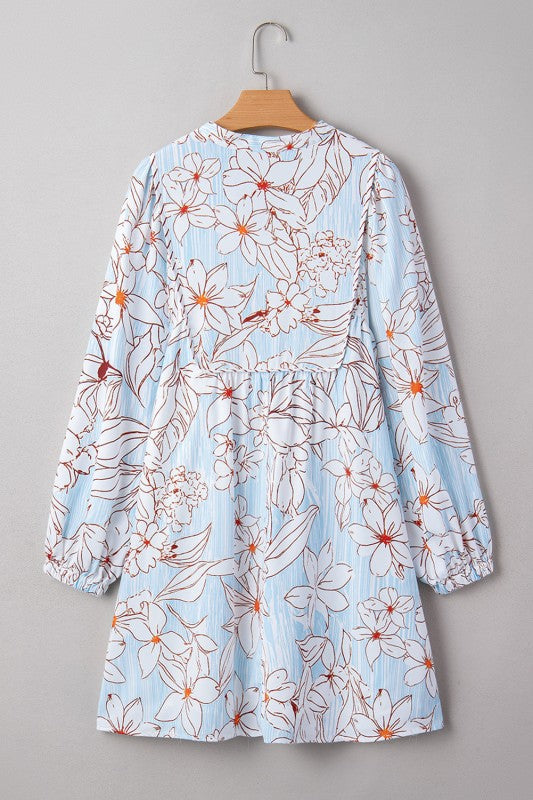 Floral Tie Neck Long Sleeve Mini Dress