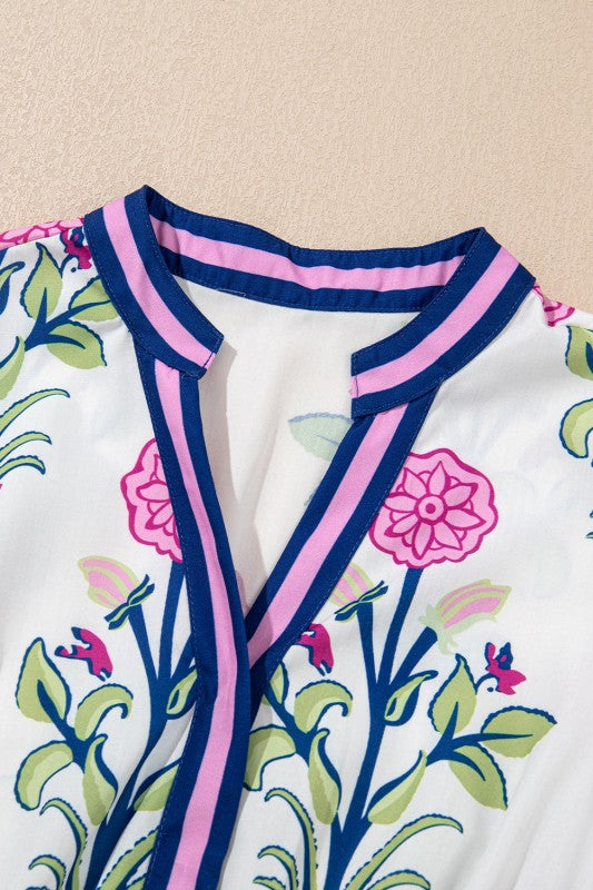 Julietta Floral Puff Short Sleeve V Neck High Wais
