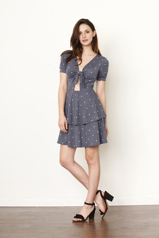 Knot front polka dot ruffle mini dress