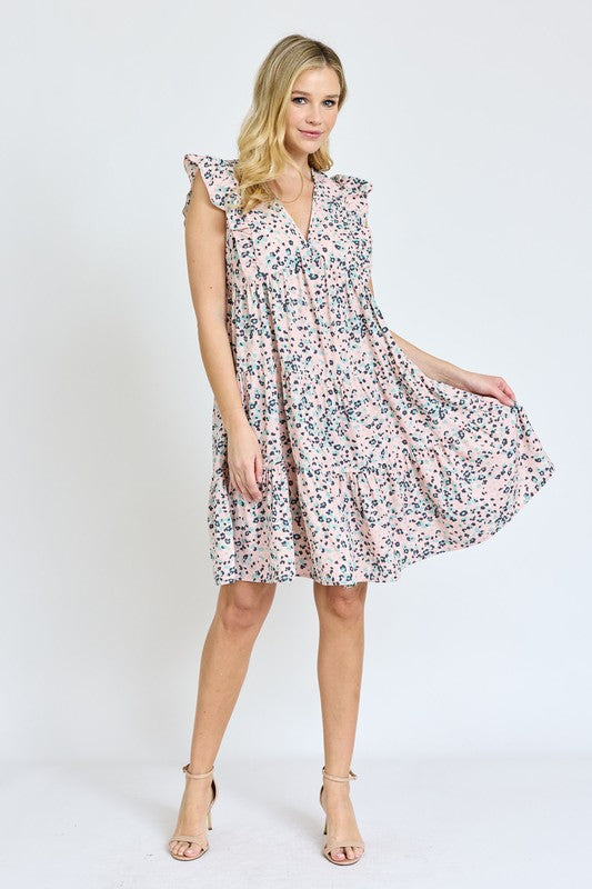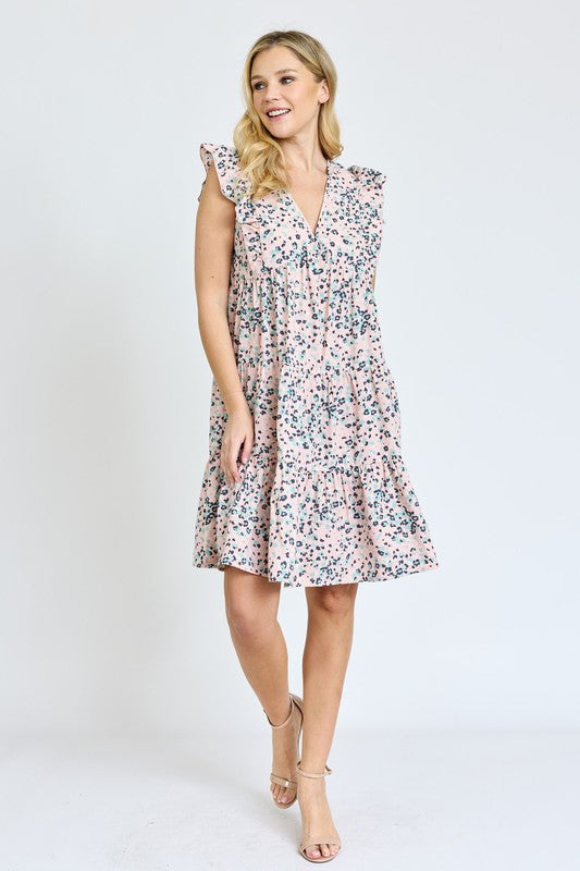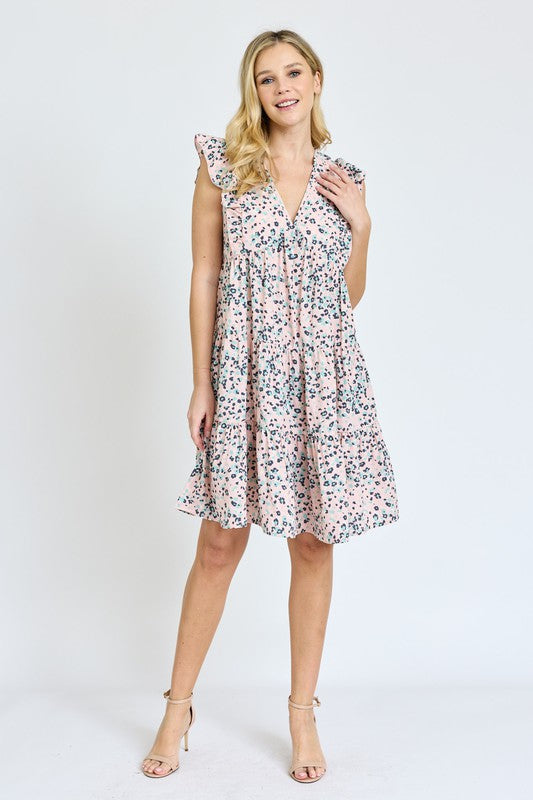 Unleash your wild side with this Leopard Flutter Sleeve V Neck Dress. Made in the United States with 100% polyester fabric, this dress is fierce, flattering, and perfect for any occasion. Embrace your inner fashionista and rock this dress with confidence!