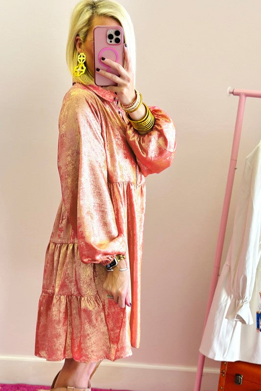 Metallic Balloon Sleeve Shirt Plus Size Mini Dress