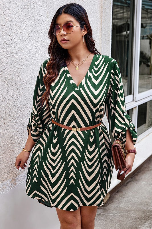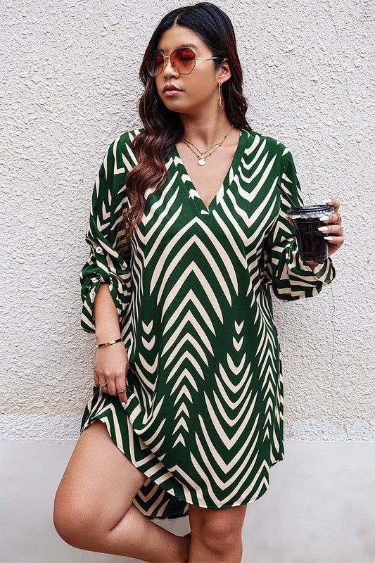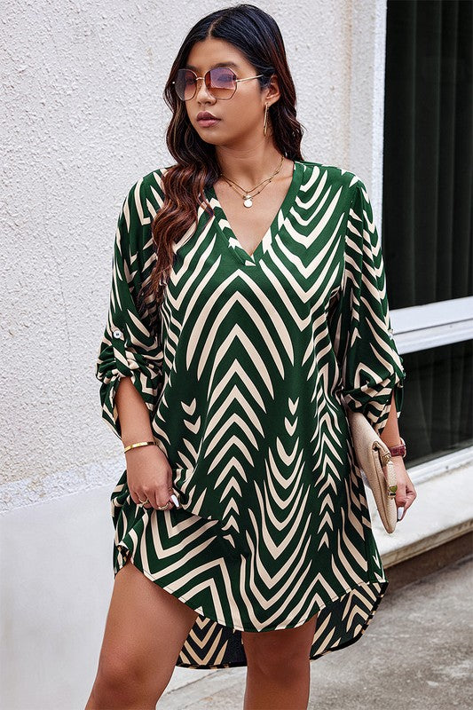 Features: Plus Graphic Print Asymmetric Hem Loose Midi Dress