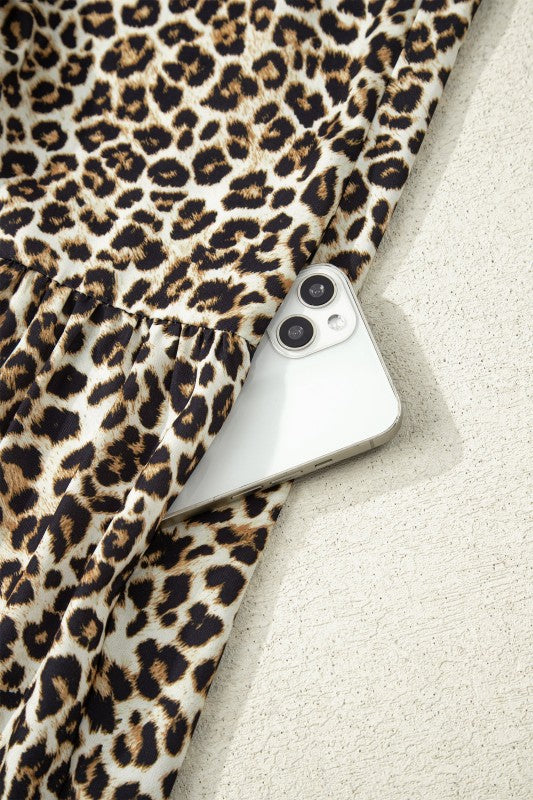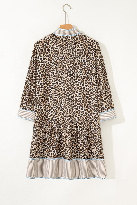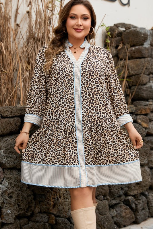 Plus Size Leopard Stripe Trim V-Neck Mini Dress