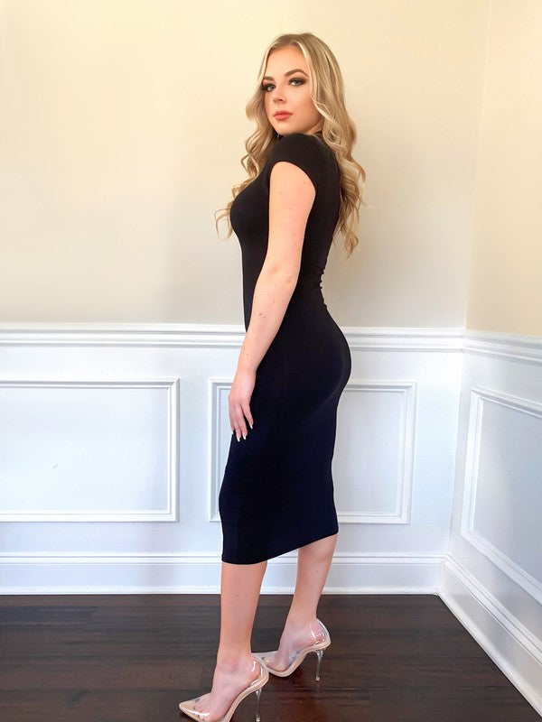 Planning to go get drinks with the girls or having a date night. the \"Renee\" is the dress for you! Clinging fabric, double-lined, and form-fitting. comes in black in small, medium, and large sizes. Nice Stretch Model is wearing a size Small