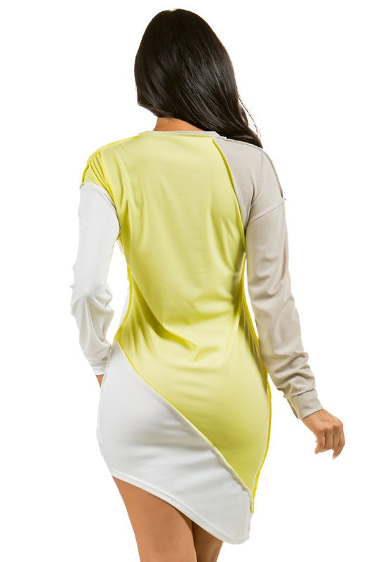 Sexy fashion dress, round neckline, long sleeves, low and high look