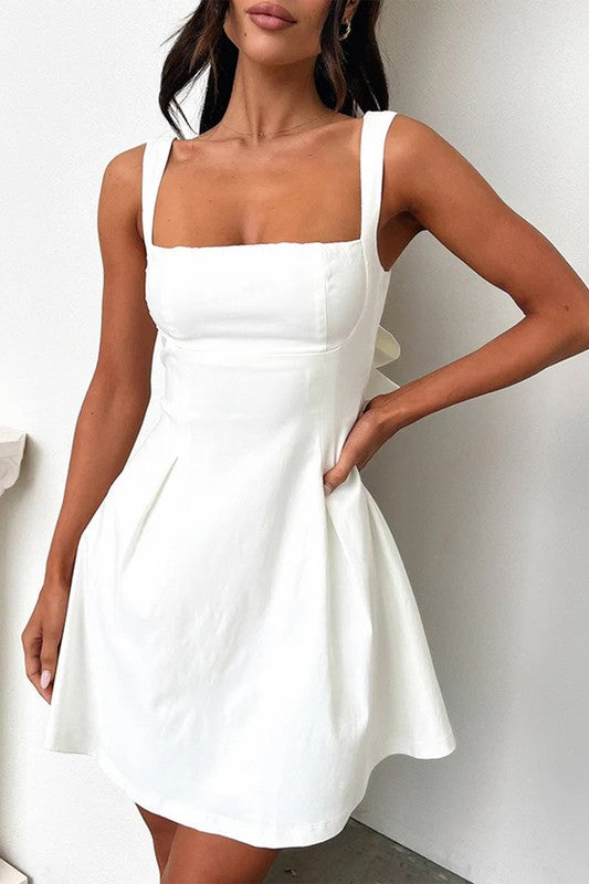 Features: Solid Sleeveless Fit Wide Strap A Line Dress
