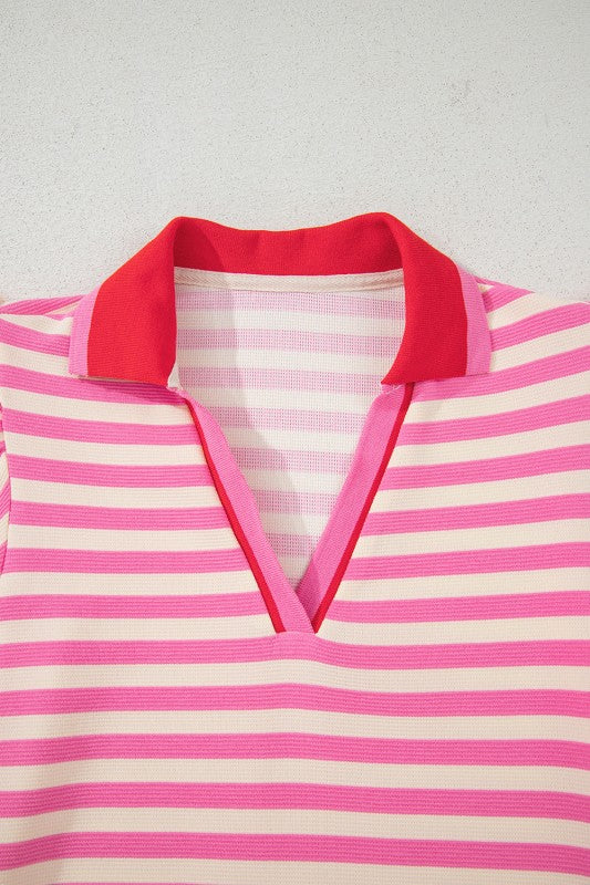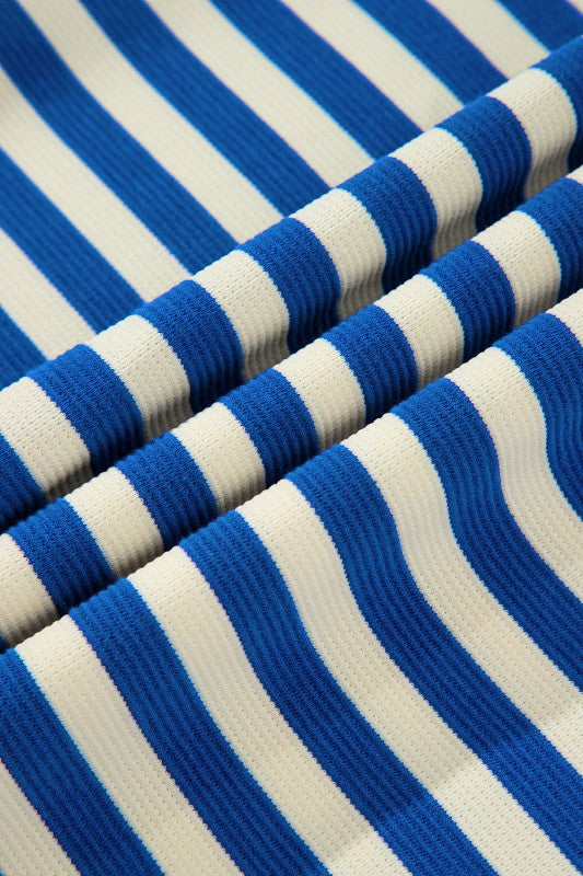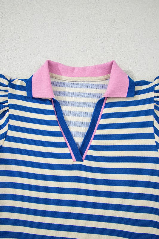Stripe Flutter Sleeve Contrast Collar Mini Dress