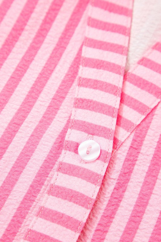 Stripe V-Neck Flare Sleeve Tiered Mini Dress