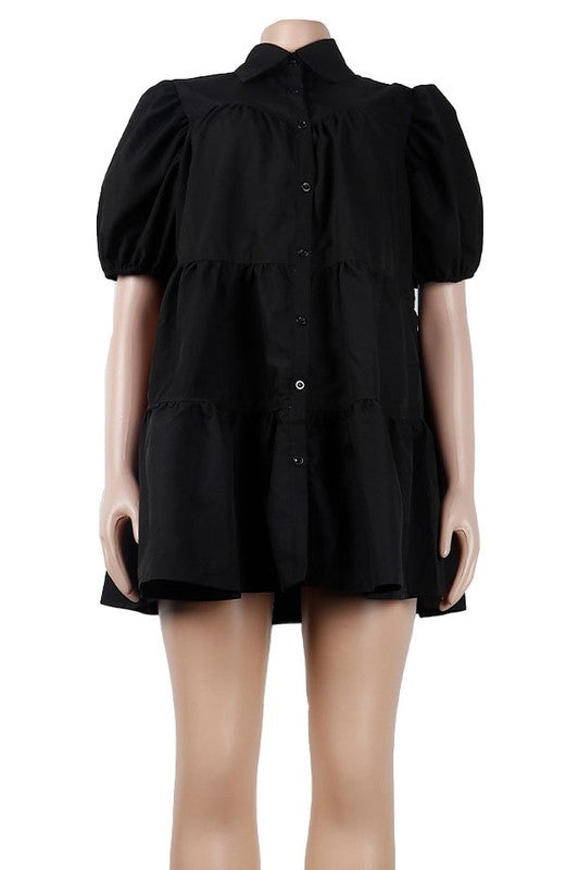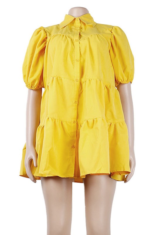 Sexy fashion dress, short sleeves, collared neckline, front button, cute look