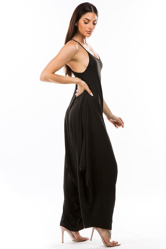 Sexy jumpsuit round neckline ,thin strip, sleeveless , harem pant jumpsuit