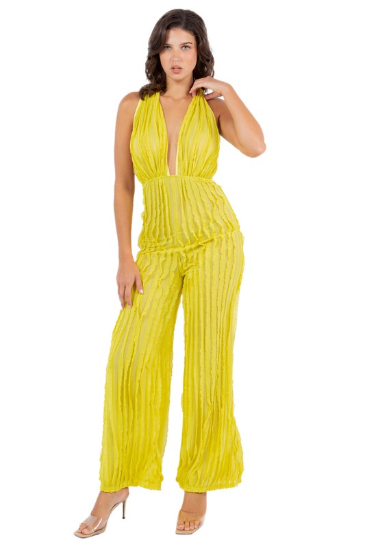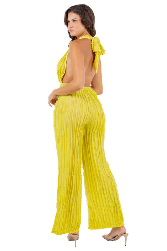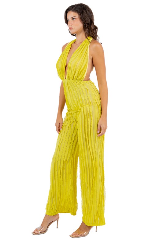 Sexy deep V-neckline back self strip ,open back ,elasticized waist