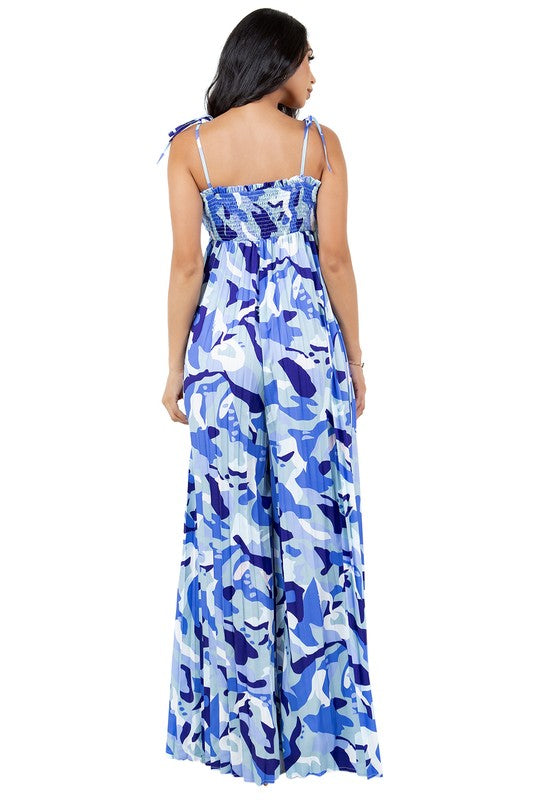 Sexy summer jumpsuit, sleeveless, thin strap, Ribbed trim, wide-leg style pants