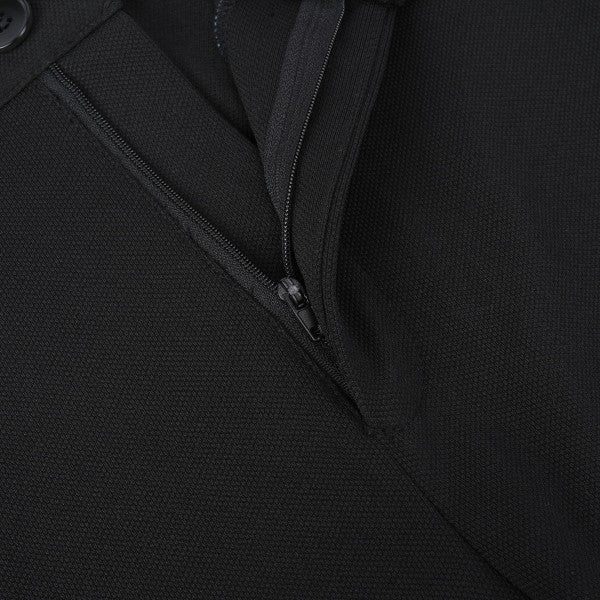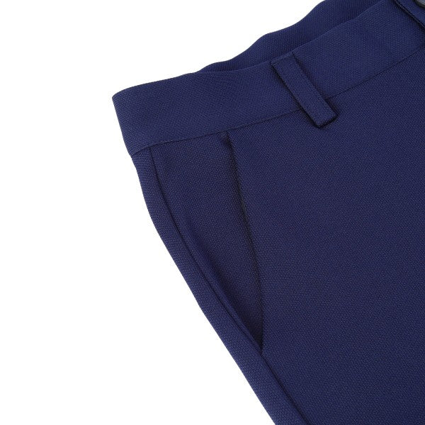 These flat front pants have two utility side pockets, zip fly with button closure.