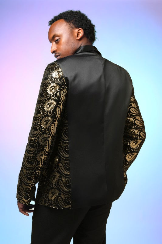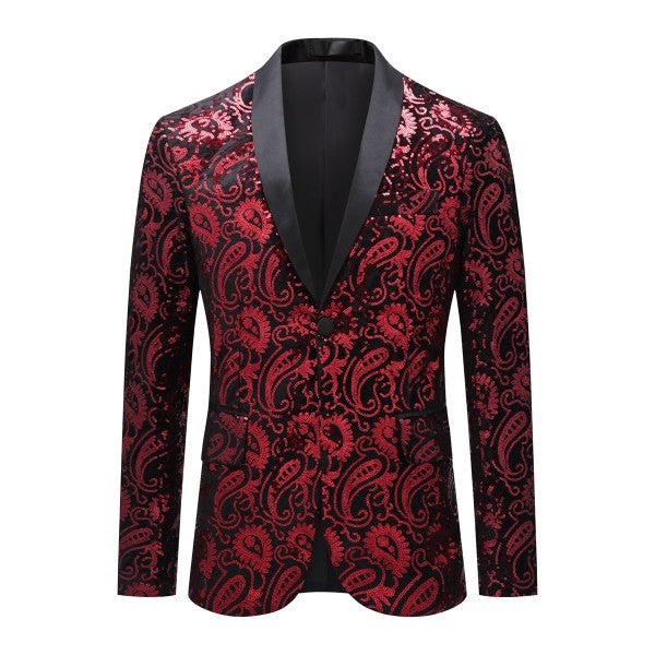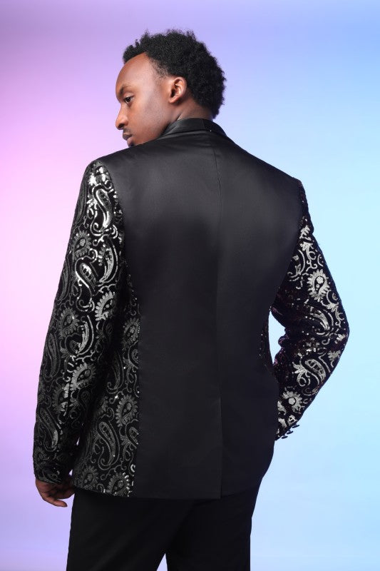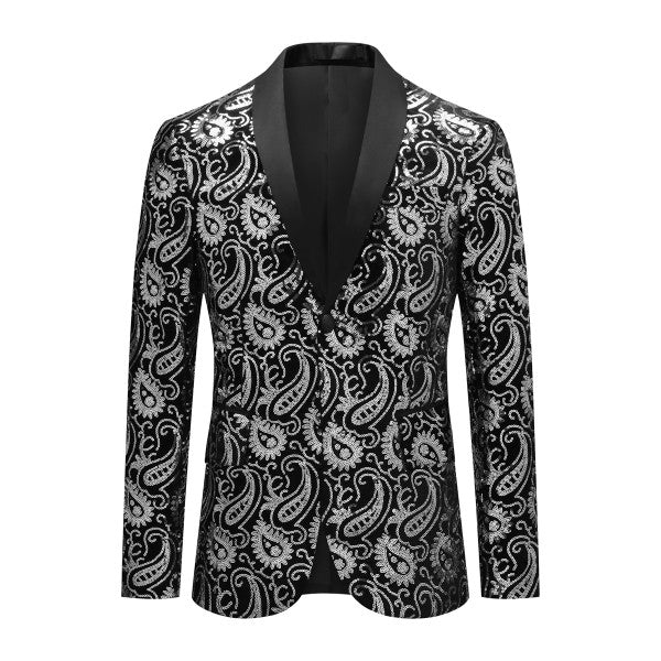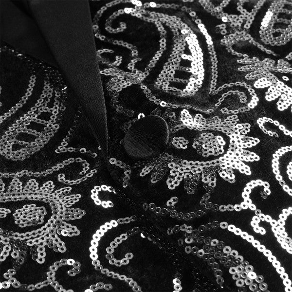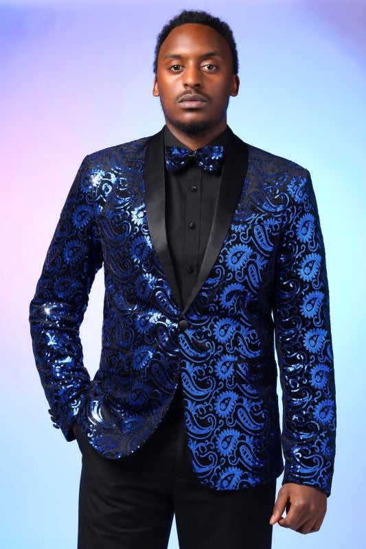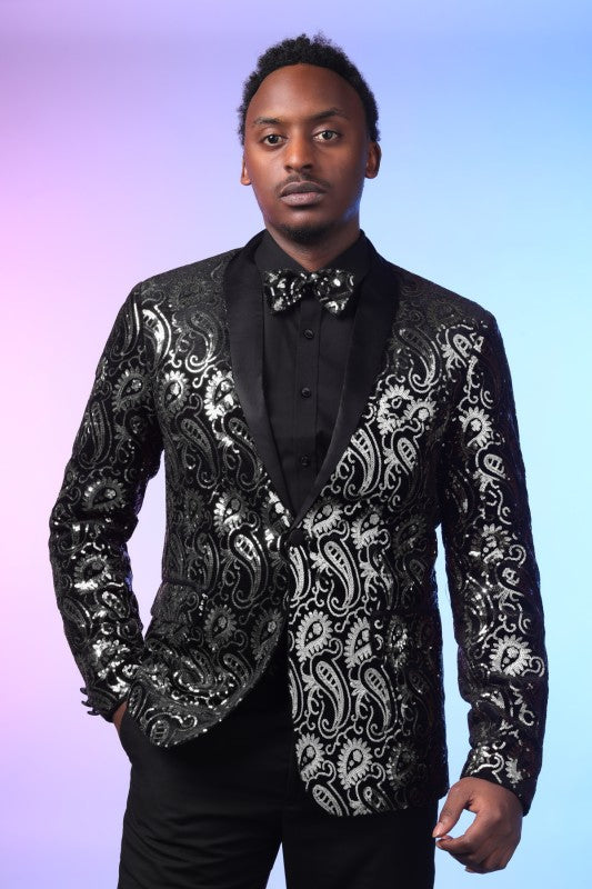 Mens Sequin Paisley Tuxedo Jacket With Bow Tie