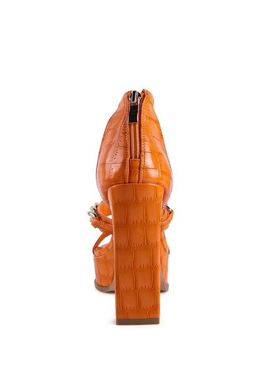 T strap and Mary Jane have a vibe this season and this style encashes it on. The high-heeled block sandal comes with a back zipper opening and has trendy shiny metal chain detail. Has lightly cushioned insole which cuts strain.