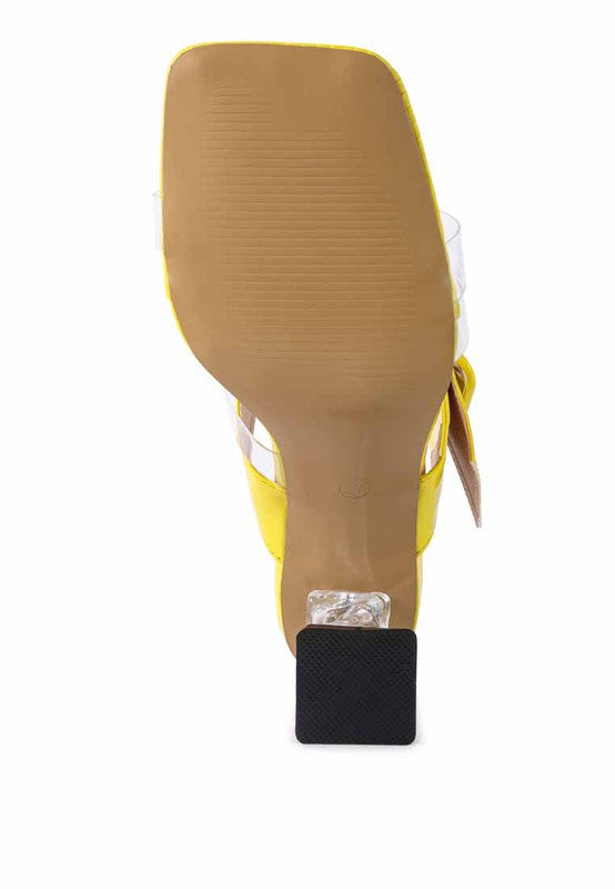 Big Pin Buckle on the straps, with crystal effect clear heel - this mid-heel slide sandal is for comfort and trend.