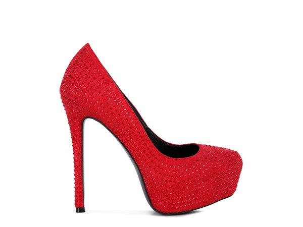 CLARISSE Diamante Faux Suede high Heeled Pumps