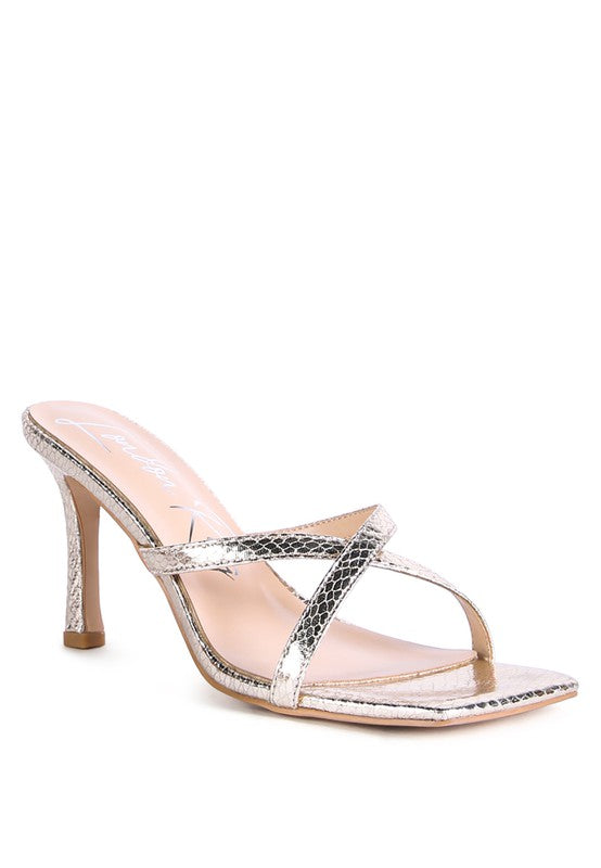 MURIEL CROC CROSS STRAP SLIDER SANDALS
