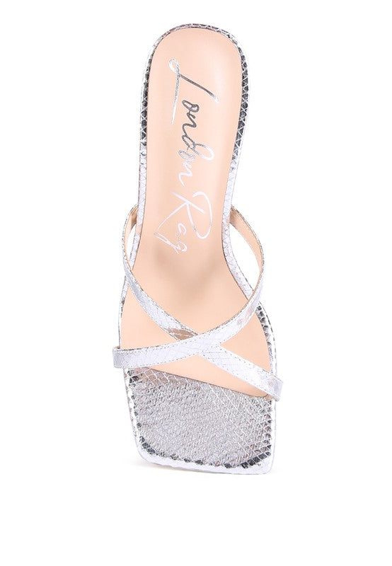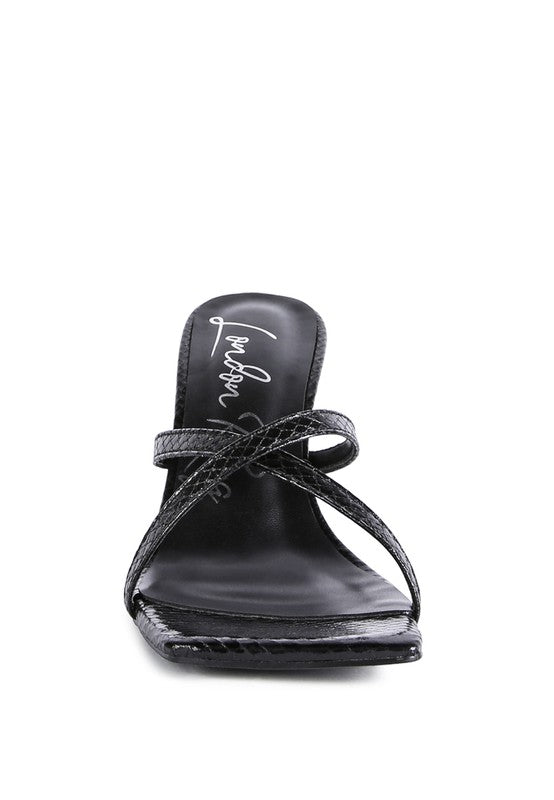 Mid Heel cross strap slider sandals with square toe design. Crafted with great finish, design, and construction - this casual style shoe with a cushioned insole is stylish and trendy.