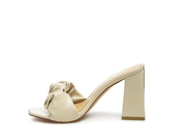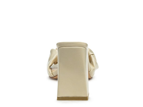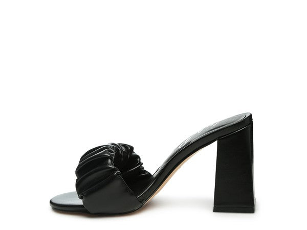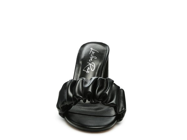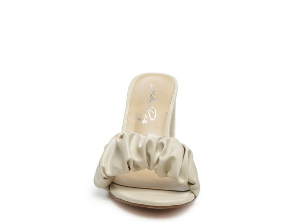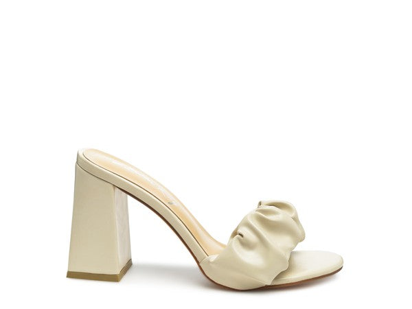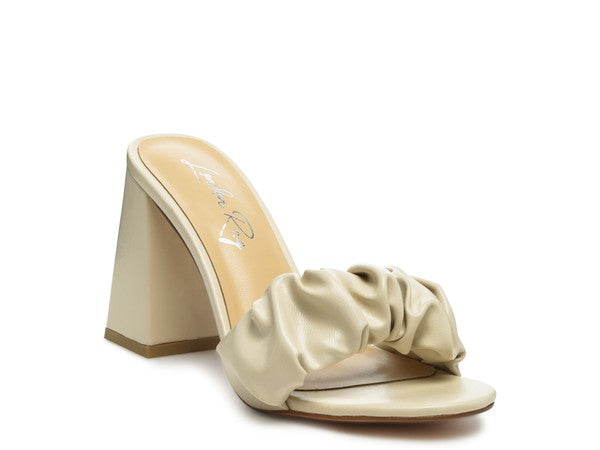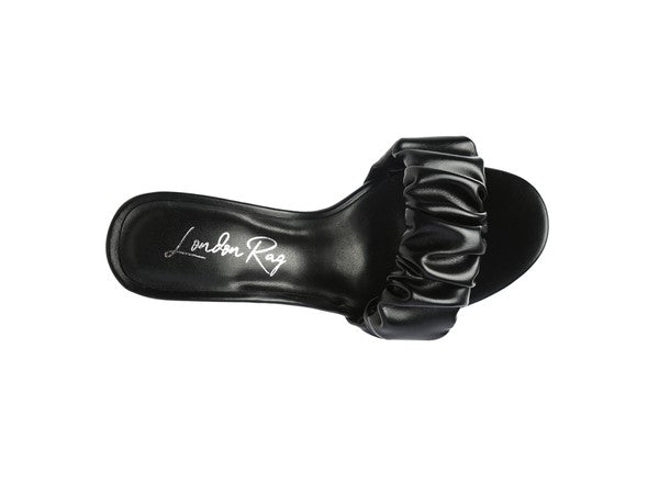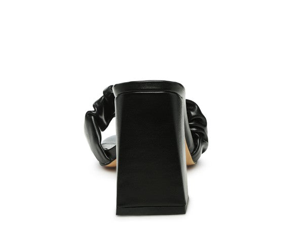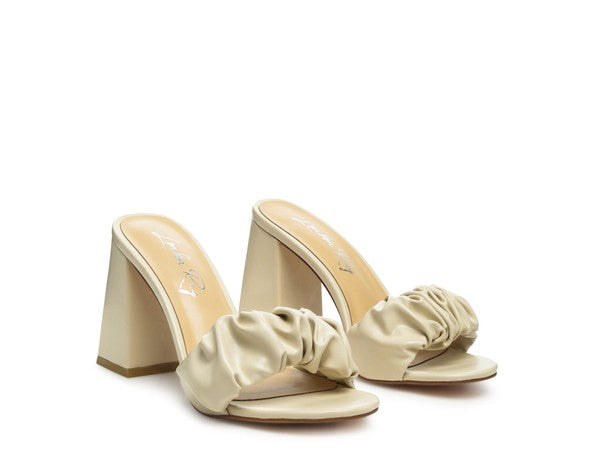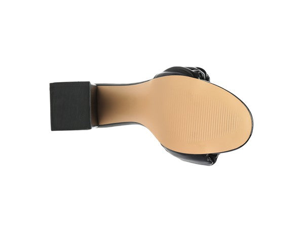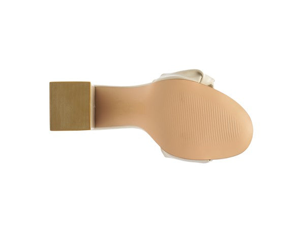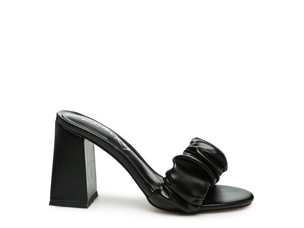 Pair of casual slip-on mid heel sandals. The block heeled shoe has a comfortable height and this trendy shoe will be you every day favorite.
