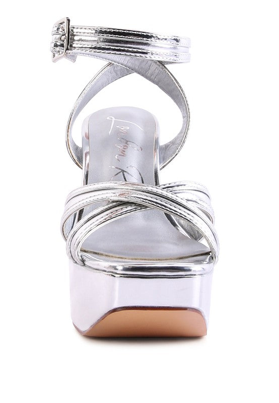 Get hold of the season with these high heeled block sandals which are worth every penny spent. In classic ankle pin buckle fastening and straps the shoe that you can hold for all your outings in summer.