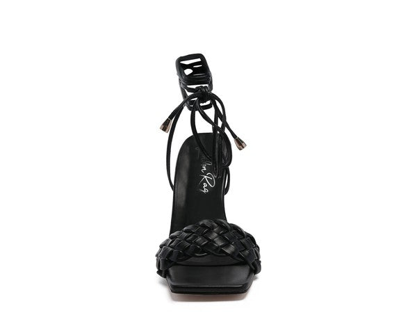Very chic and stylish the tie-up pair of sandals have interesting heels that add to the look. The woven strap holds well and provides detail to the feet. Style it your way over pair of denim or shorts.