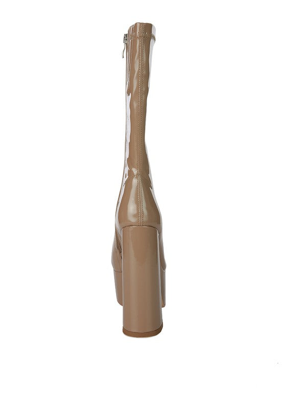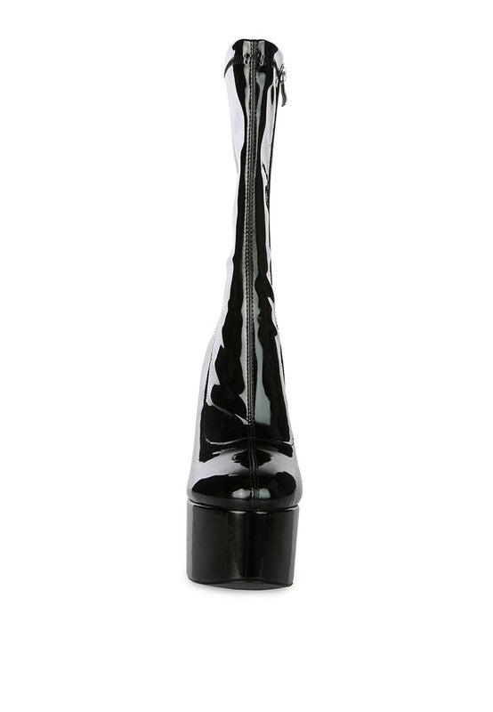 VINKELE Patent PU Platform Heeled Calf Boots