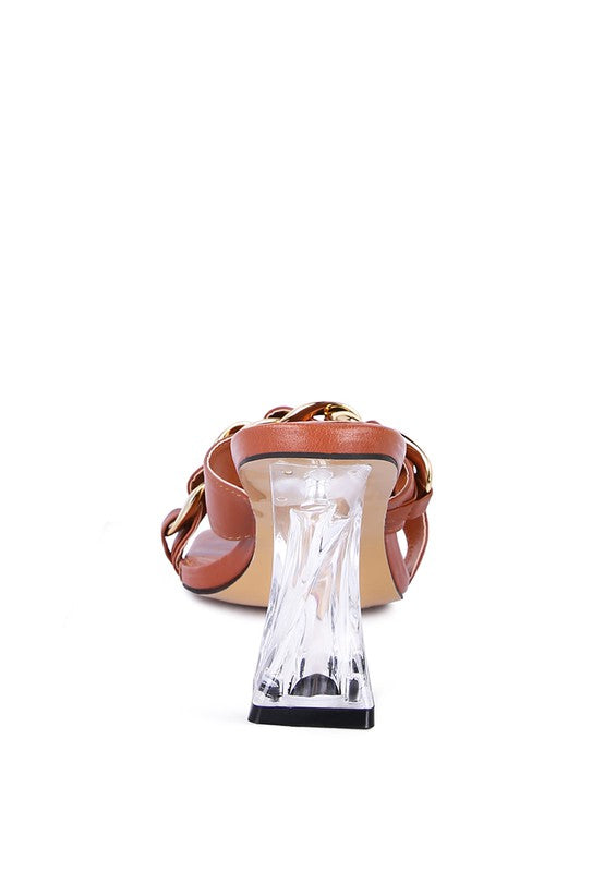 WANDY CLEAR HEEL CHAIN DETAIL SANDALS