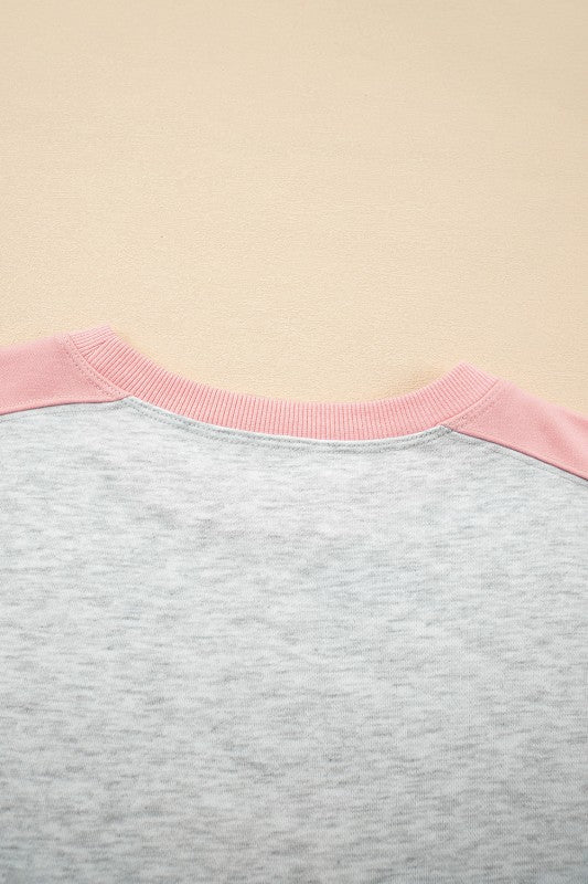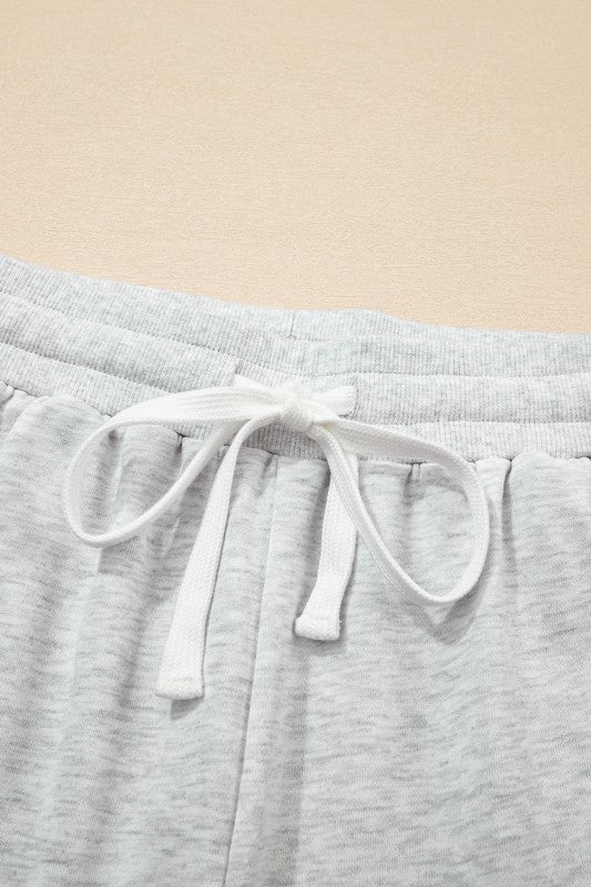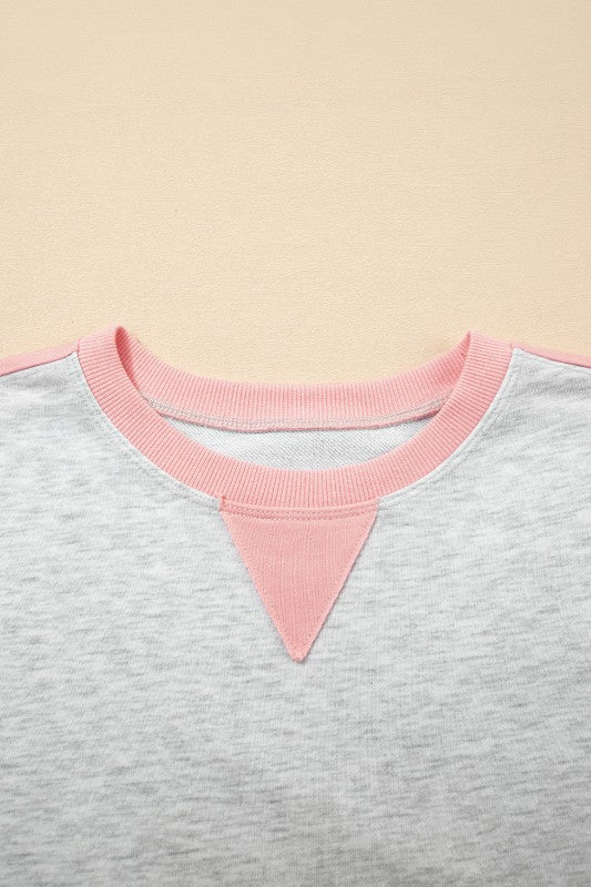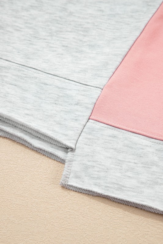 Color Block Raw Hem Pullover and Casual Shorts Set