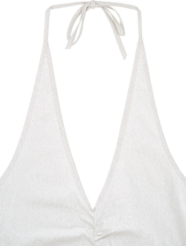 * Adjustable halter neck and striking open-back detail for a standout look.