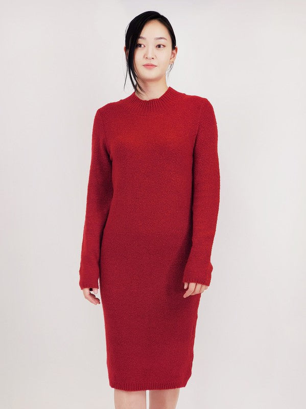 - Mock neck, Relax Fit, Long Sleeves, Midi Length, Textured Dress.
