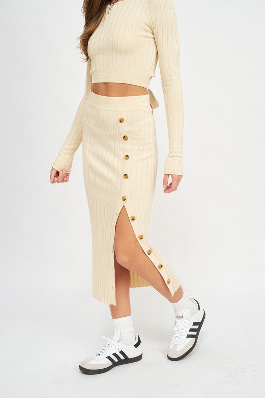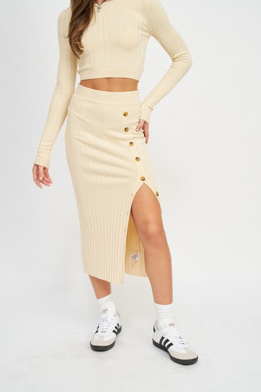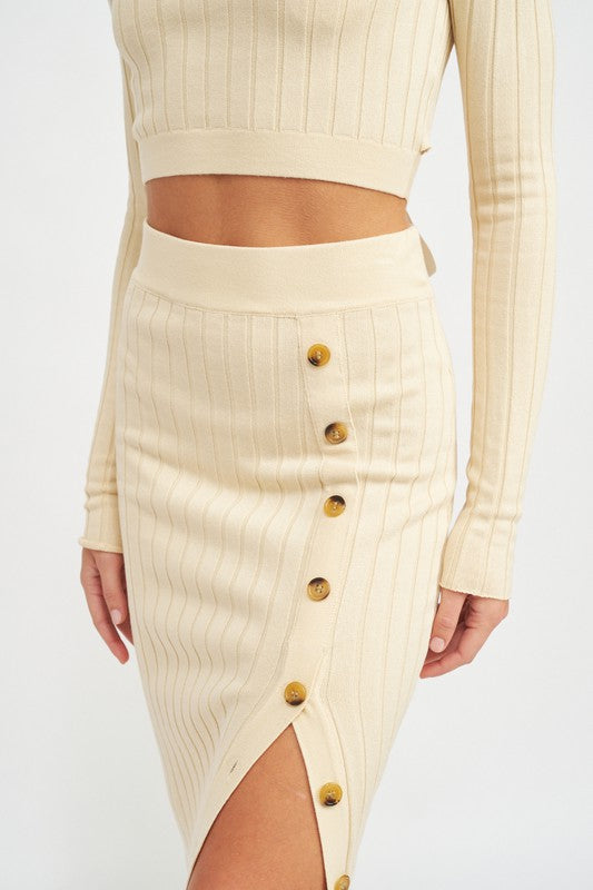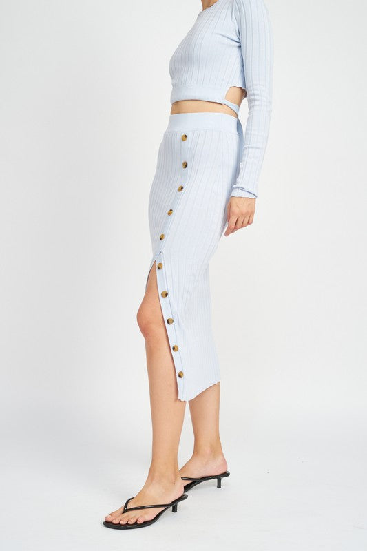 MIDI SKIRT WTIH SIDE BUTTON DETAIL
