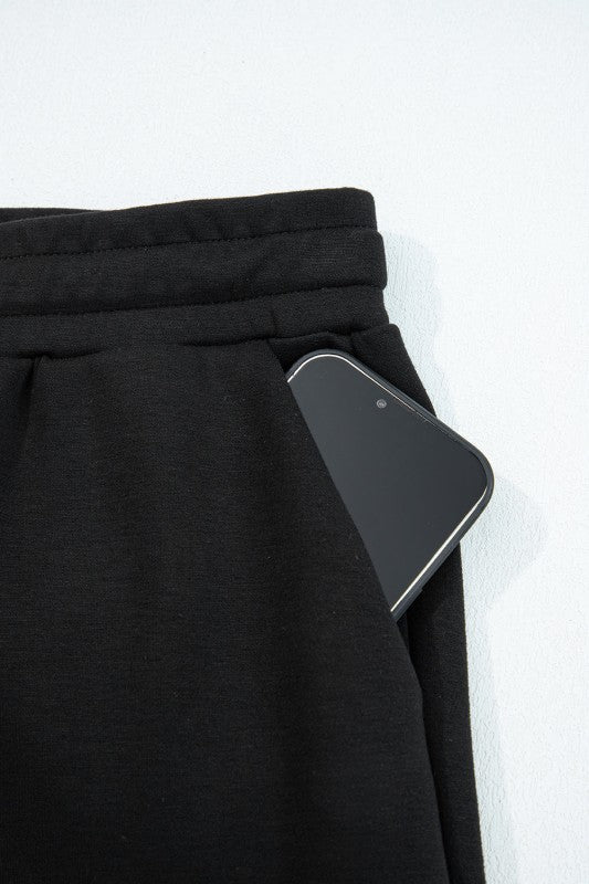 Solid Quarter-Zip Top and Drawstring Pants Set