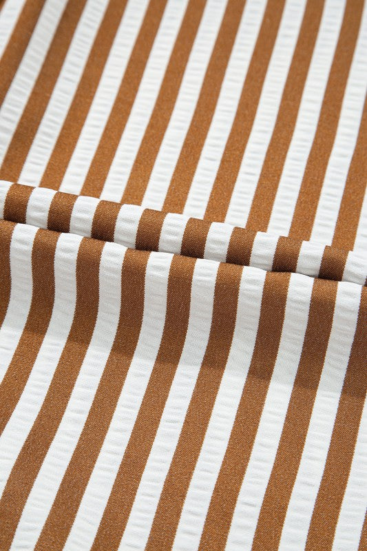 Stripe Ruffle Hem Collared Long Sleeve Shirt Mini