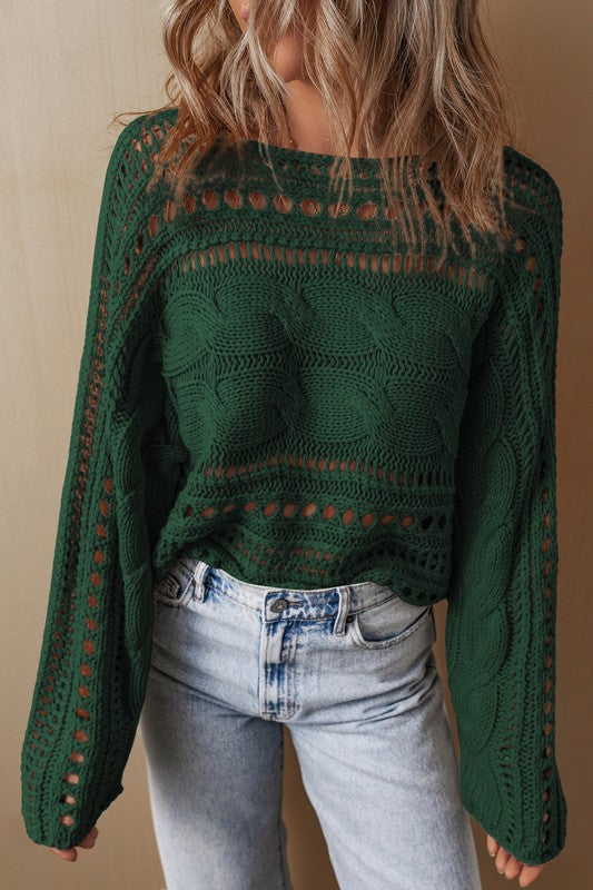 Gray Hollow-out Cable Knit Cropped Sweater