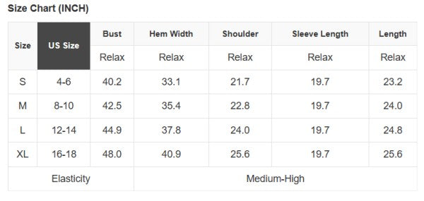 See size chart for approximate measurements.