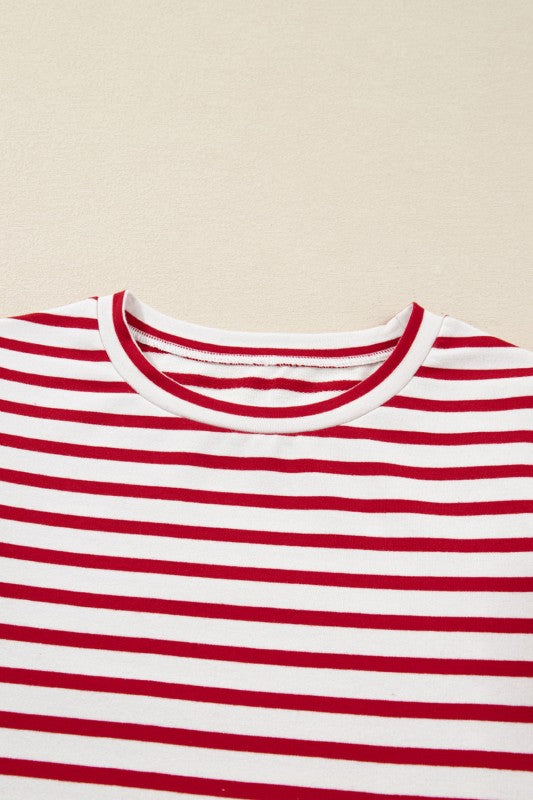 Stripe Round Neck Ruffle Trim Long Sleeve Top