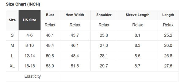 See size chart for approximate measurements.