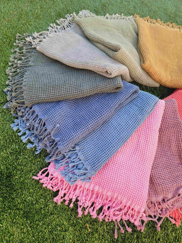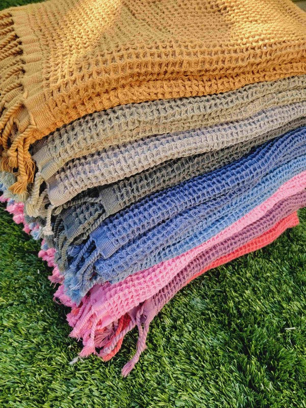 Compared to terry cloth towels, waffle towels have a larger surface area because honeycomb design. While they certainly look beautiful, their construction makes them super functional too. Waffle towels trap moisture better and dry quicker than other types of towels. They're also much more lightweight and breathable, so they'll stay fresher longer.