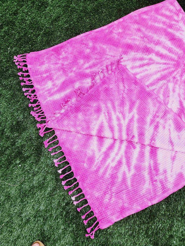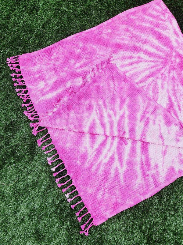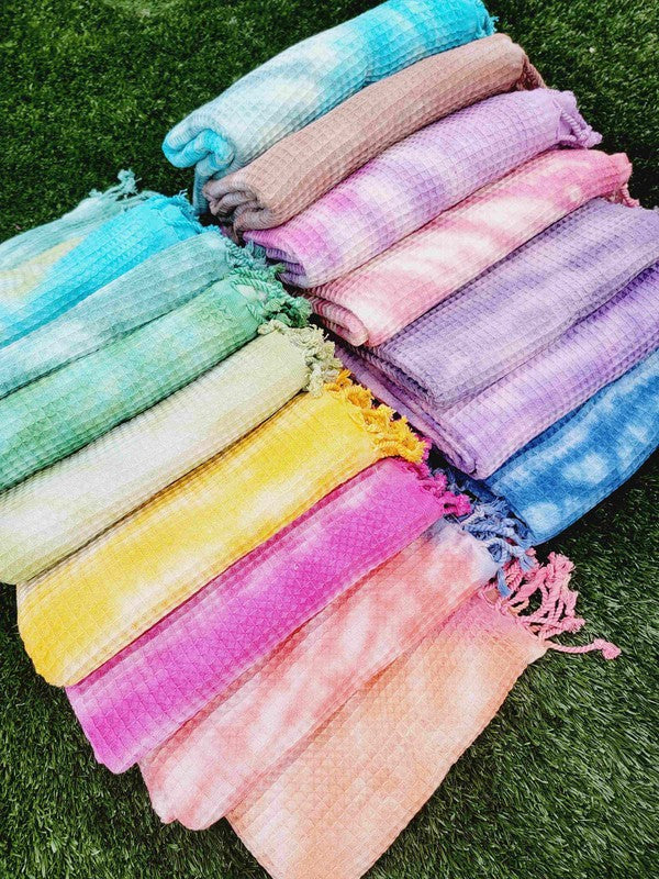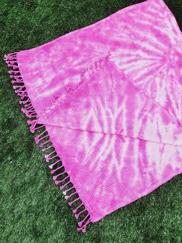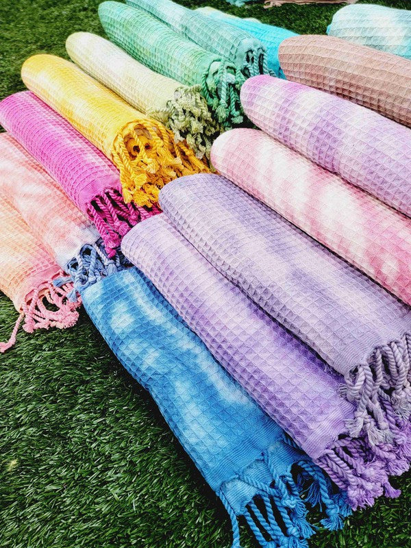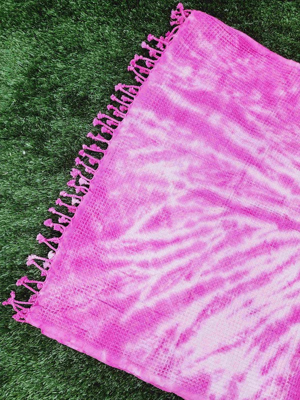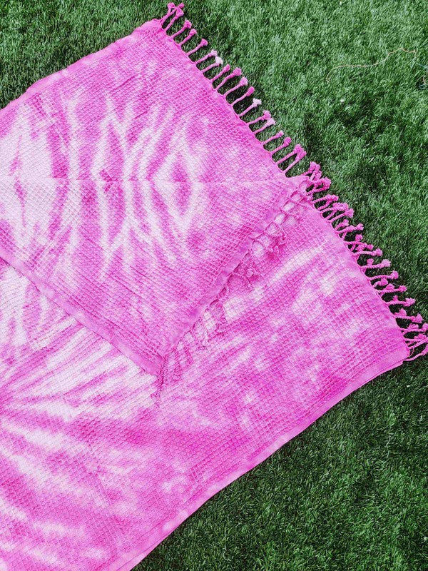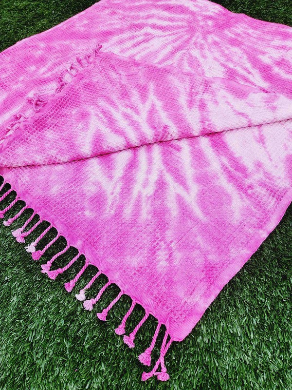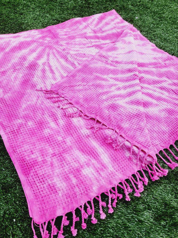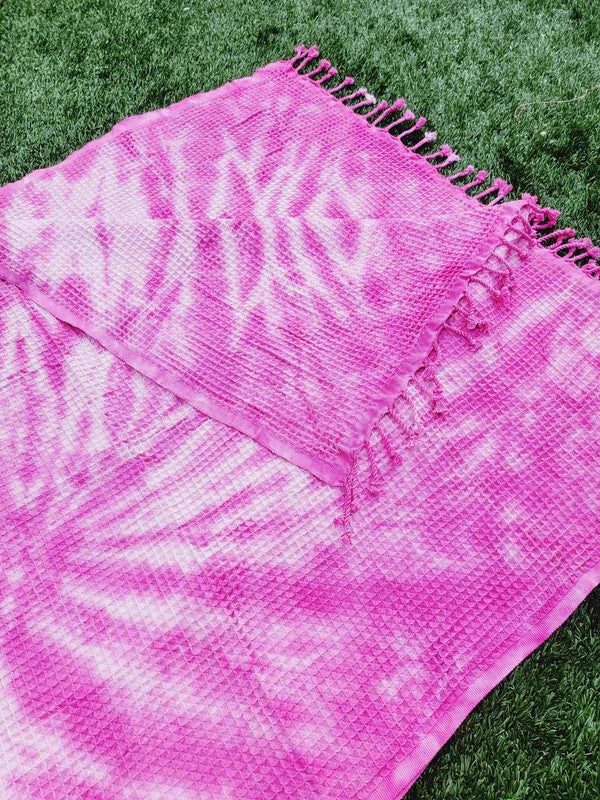 Waffle Towel,Throw Lightweight - Pink Tie Dye