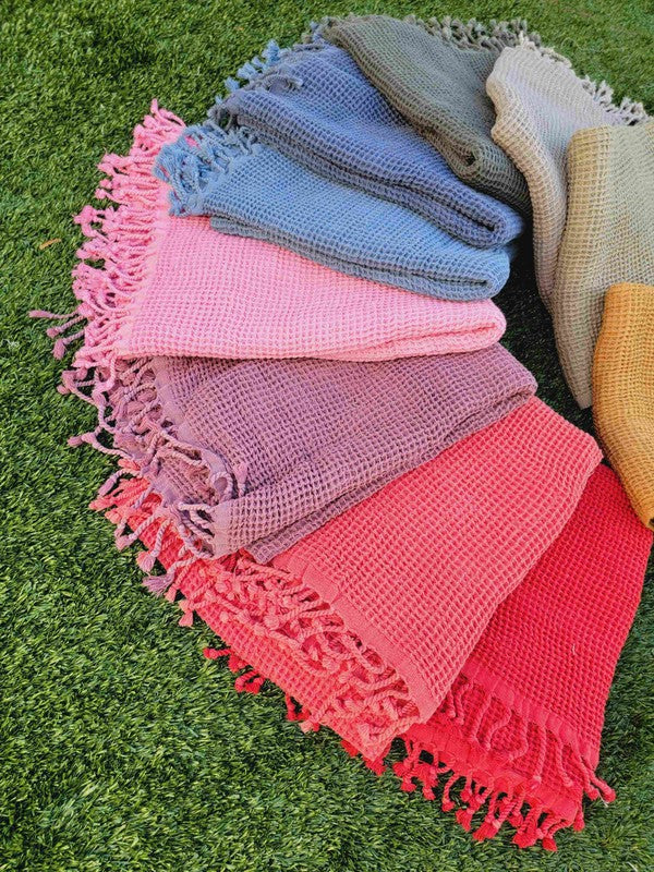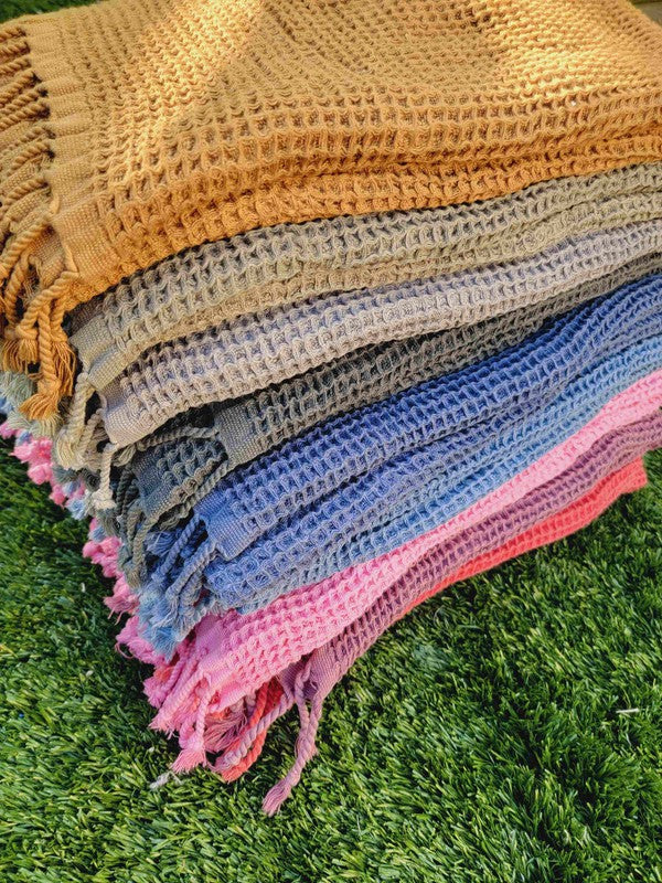 Waffle Towel, Throw Lightweight Quick Dry - Gray