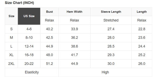 See size chart for approximate measurements.